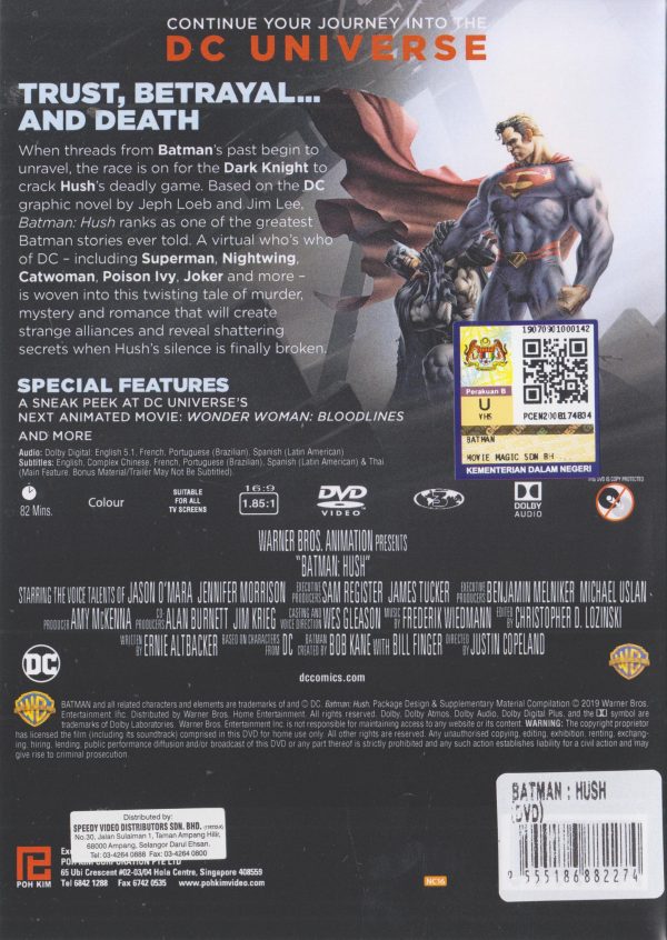 When threads from Batman’s past begin to unravel, the race is on for the Dark Knight to crack Hush’s deadly game. Based on the DC graphic novel by Jeph Loeb and Jim Lee, Batman: Hush ranks as one of the greatest Batman stories ever told. A virtual who’s who of DC – including SupermanNightwingCatwomanPoison IvyJoker and more – is woven into this twisting tale of murder, mystery and romance that will create strange alliances and reveal shattering secrets when Hush’s silence is finally broken.